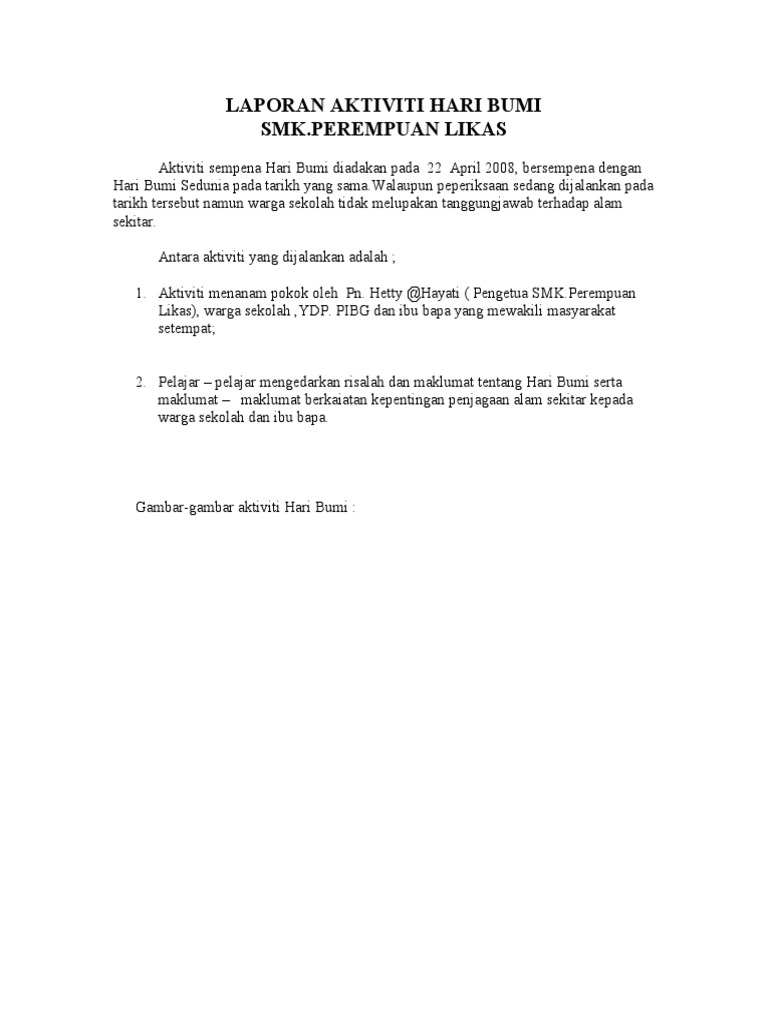 Karangan Ppsr Laporan Sambutan Hari Bumi Duniaku Nasa2k