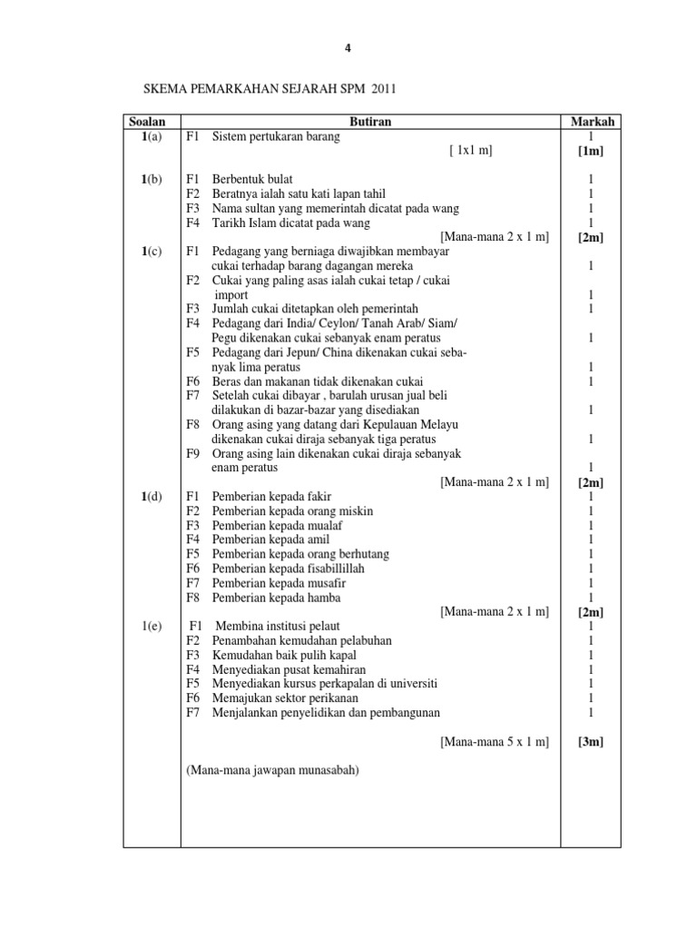 Skema Pemarkahan Kertas 2 Sejarah Spm 2011