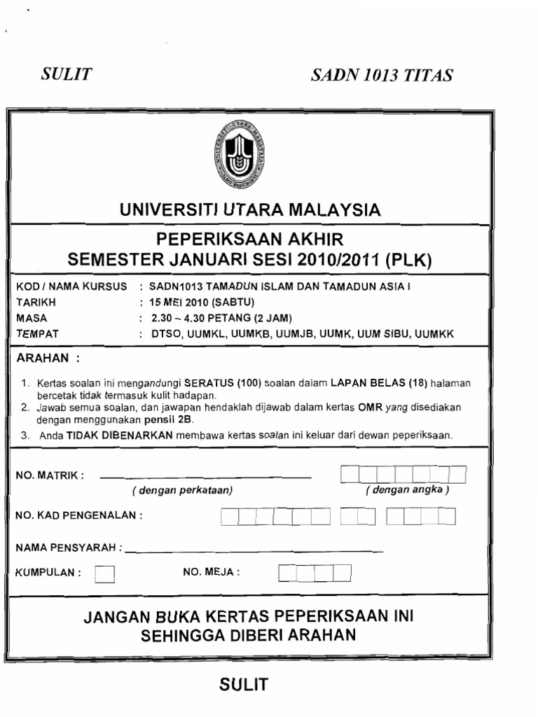 Kertas Jawapan Omr 30 Soalan Umi Wasiati