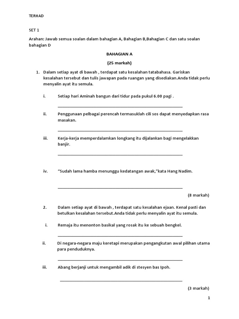 Soalan Dan Jawapan Kesalahan Bahasa Pt3 Selangor M
