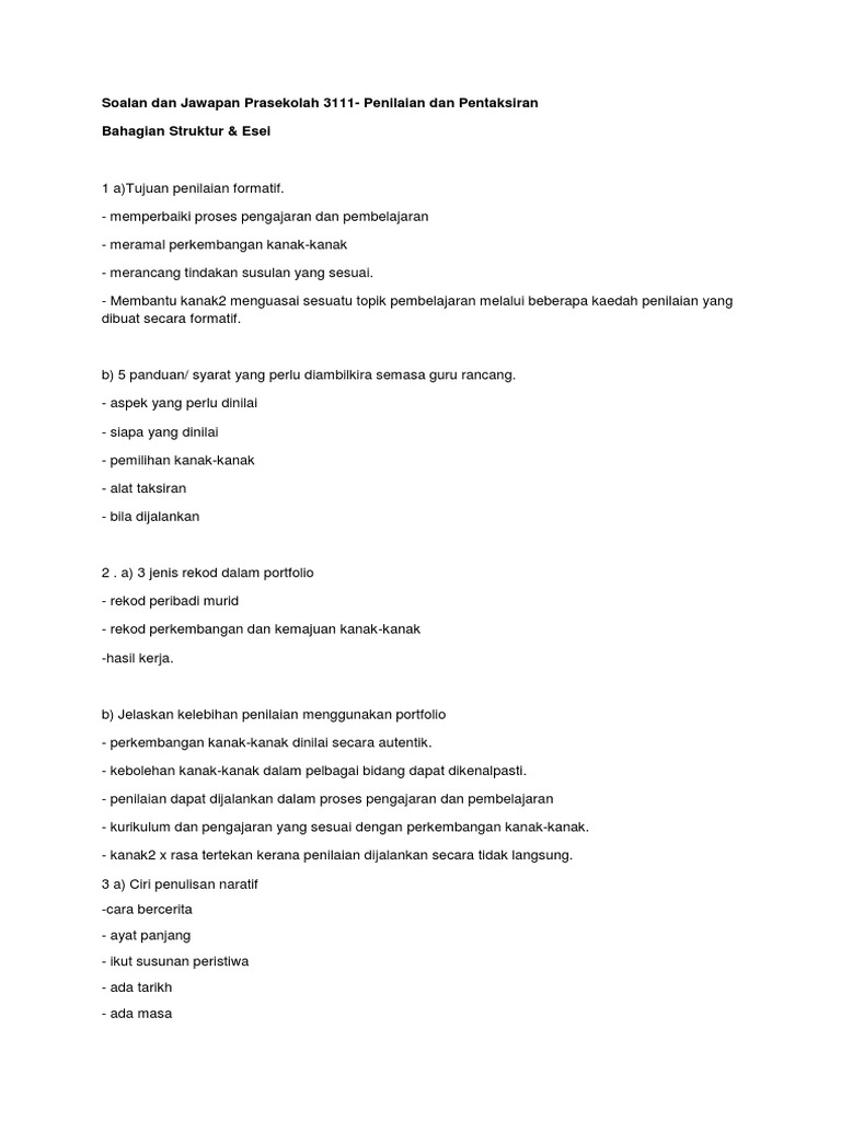 Contoh Soalan Latihan Prasekolah Malacca 0