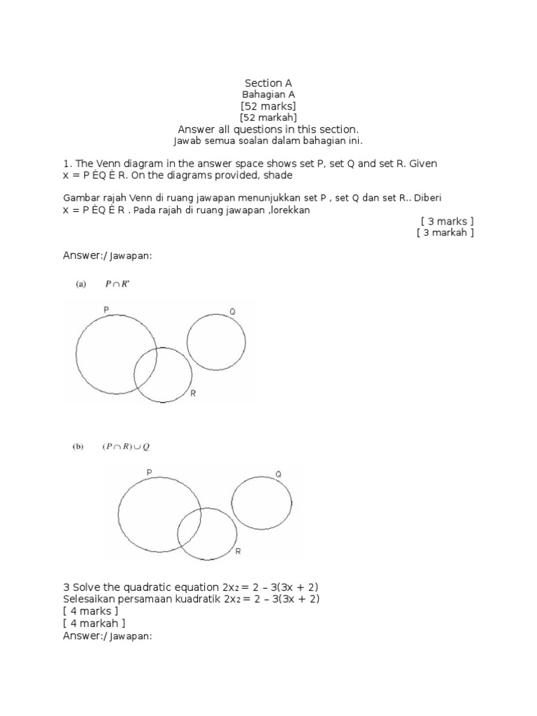 Soalan Matematik Tingkatan 4 Akhir Tahun Dan Jawapan Malacca W