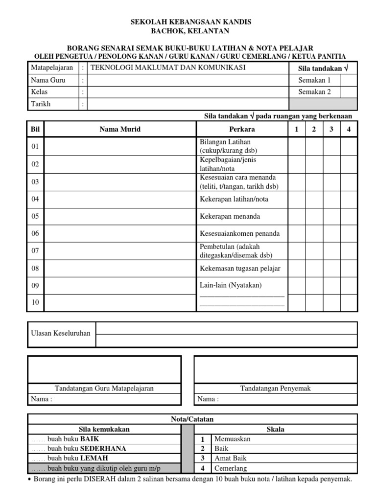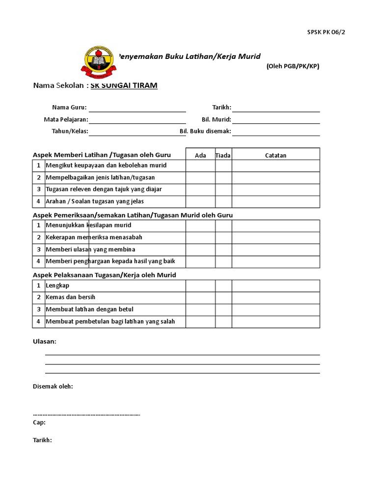Borang Semakan Buku Latihan Skst 2019 2