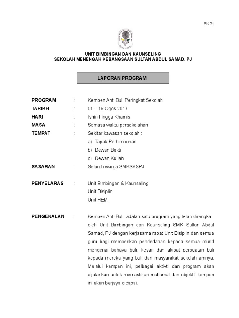 Buku Program Kempen Anti Buli Sma Rembau Percubaan Spm 2020 Di Samping Itu Kempen Anti Buli Juga Dilaksanakan Putri Maknum