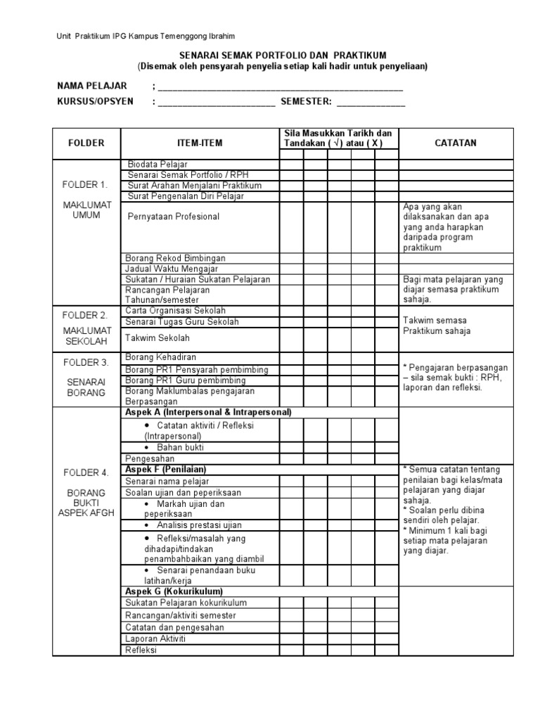 Senarai Semak Portfolio Praktikum