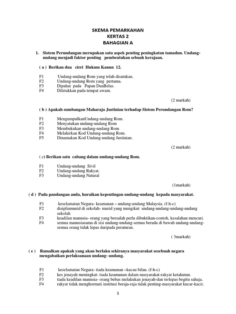 Skema Perundangan Pdf Soalan 1 A Butiran Markah Jelaskan Sistem Perundangan Tamadun Rom F1 F2 F3 F4 F5 F6 F7 F8 F9 F10 F11 F12 F13 B Undang Undang Course Hero