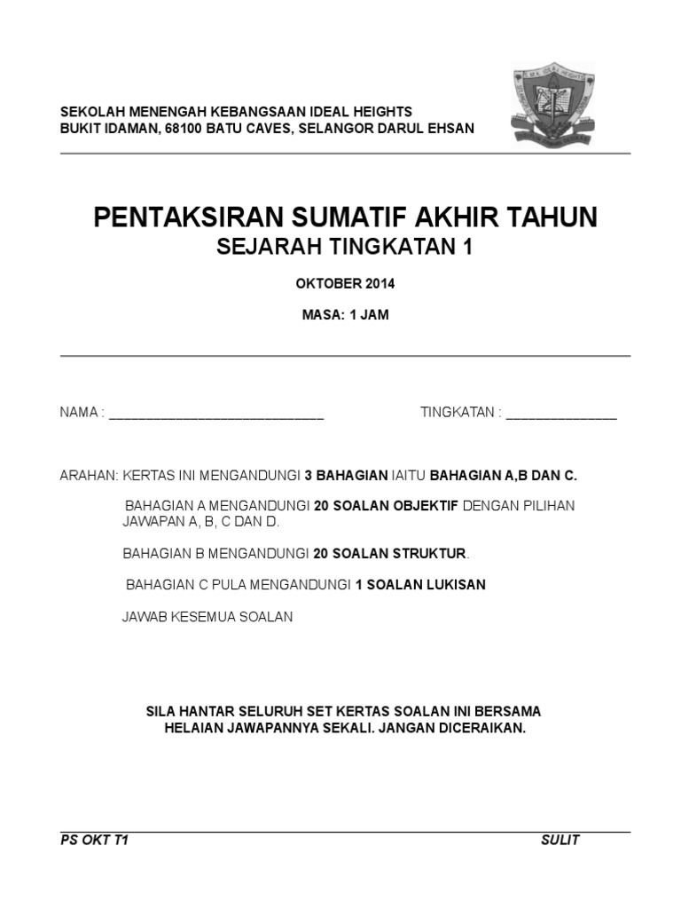 Sejarah Tingkatan 1 Akhir Tahun 2014 Badariah Copy