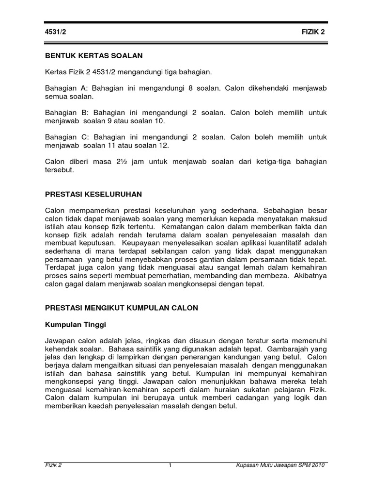 Fizik K2 Spm 2010 Kupasan Mutu Jawapan Calon
