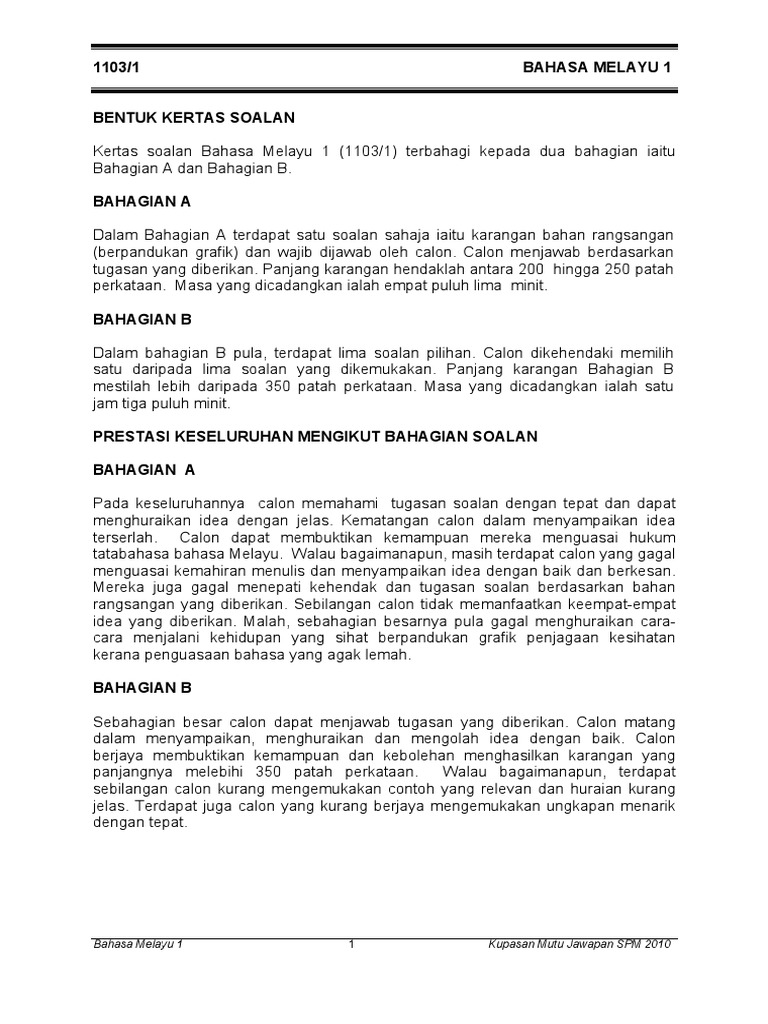 Bahasa Melayu K1 Spm 2010 Kupasan Mutu Jawapan Calon