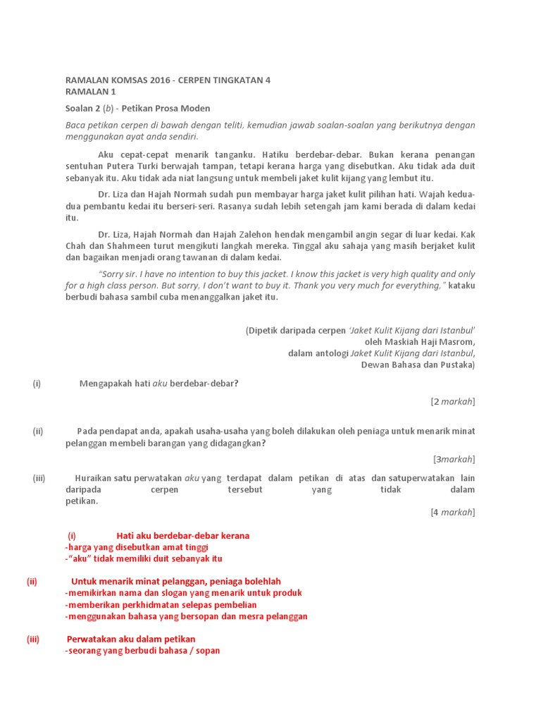 Soalan Dan Jawapan Jaket Kulit Kijang Dari Istanbul Kerja Kosp