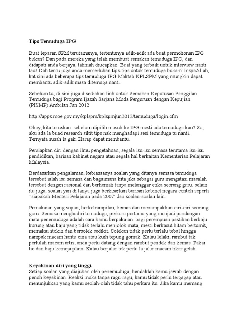Dokumen Serupa Dengan Tips Temuduga Ipg