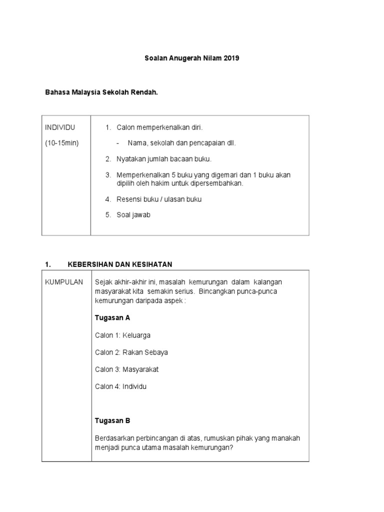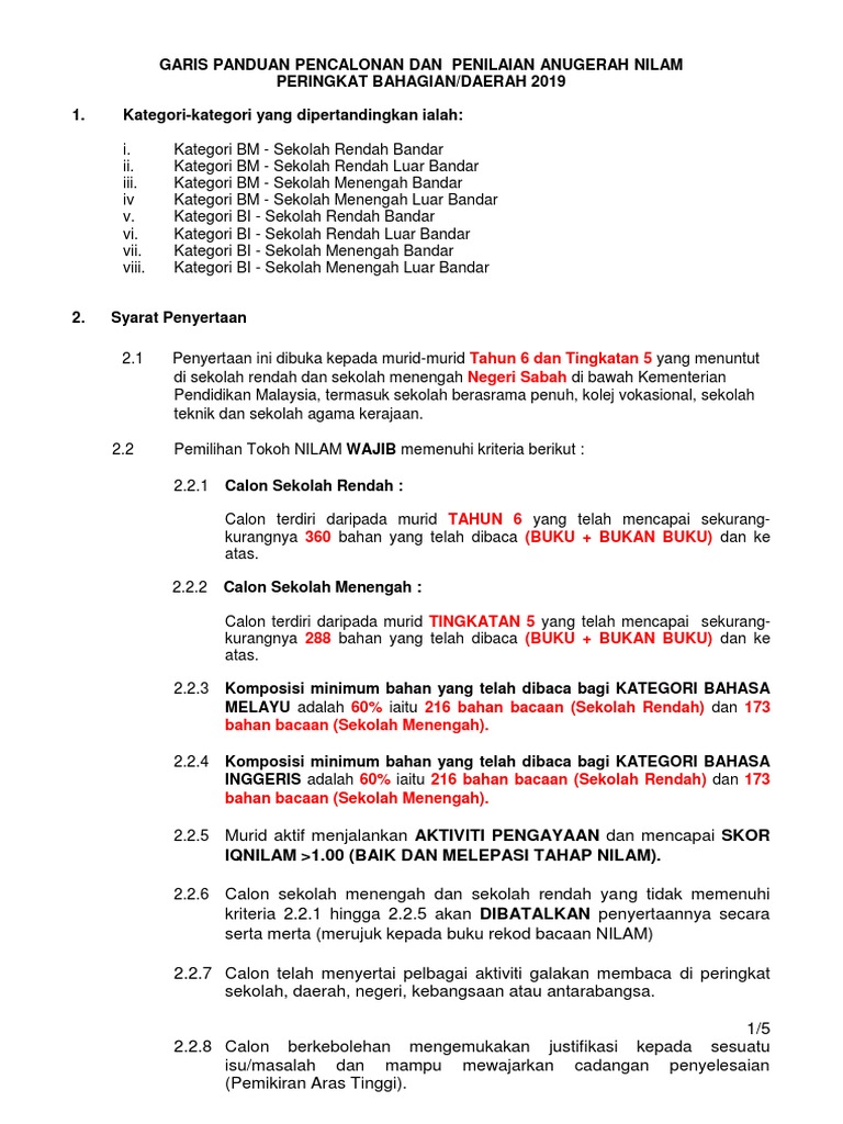 Bidang Dan Penilaian Calon Nilam 2019 Terbaru