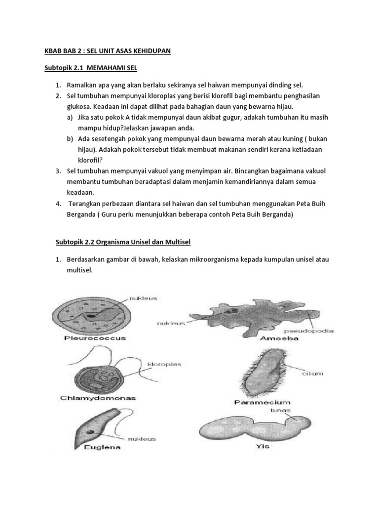 Kbat Bab 2 Sel Sebagai Unit Asas Kehidupan