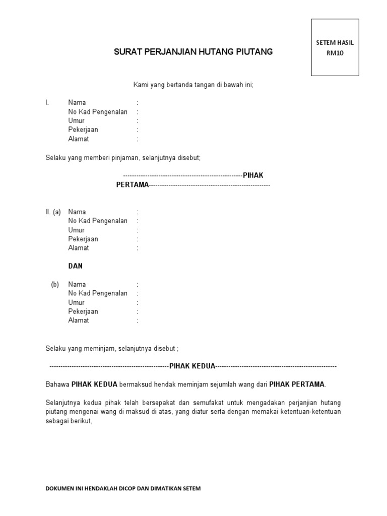 Contoh Surat Perjanjian Pinjaman Wang Pdf