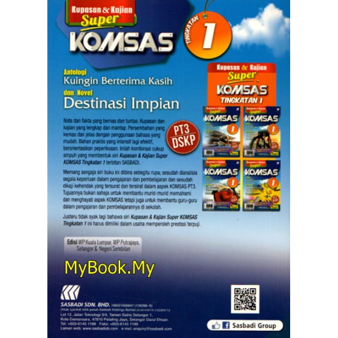 Myb Buku Kupasan Kajian Komsas Tingkatan 1 Kuingin Berterima Kasih Destinasi Impian Sasbadi Shopee Singapore