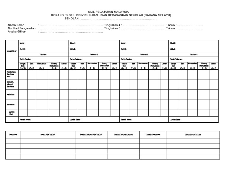 Borang Markah Induk Ulbs Spm Kps Bahasa Melayu 2010