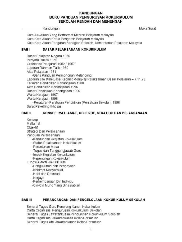 Kandungan Buku Panduan Pengurusan Kokurikulum Surat Pekeliling Ikhtisas Bab Ii Konsep Matlamat Objektif Pdf Document