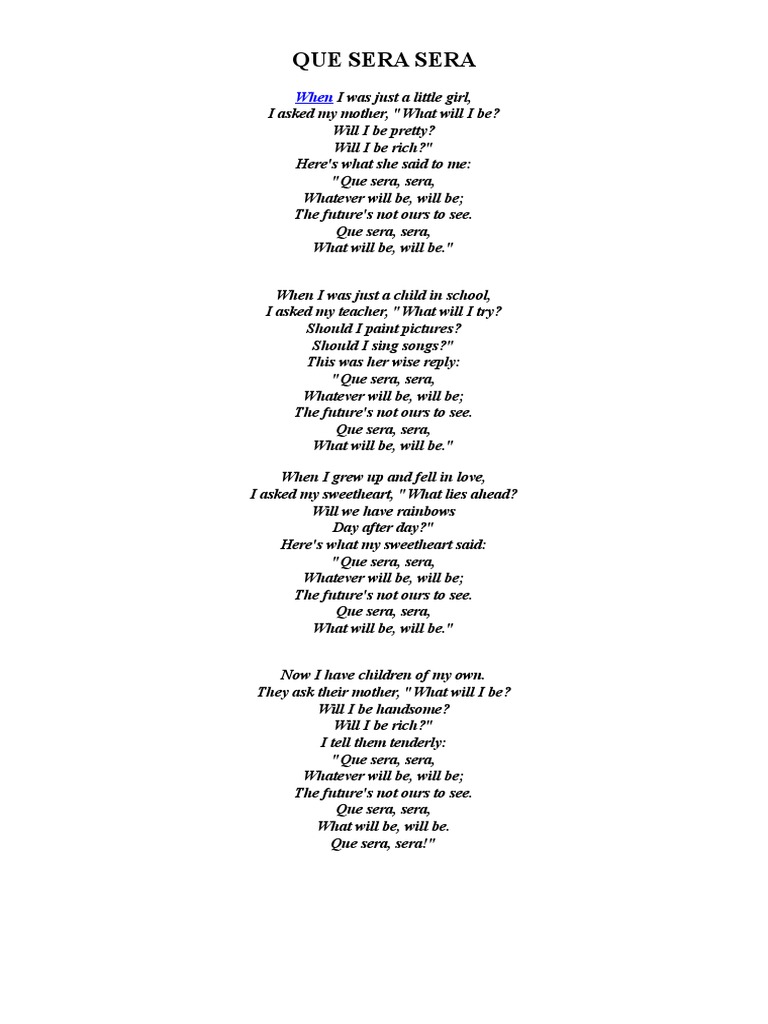 Pesan Lagu Que Sera Sera Dalam Bahasa Inggris Brainly Co Id