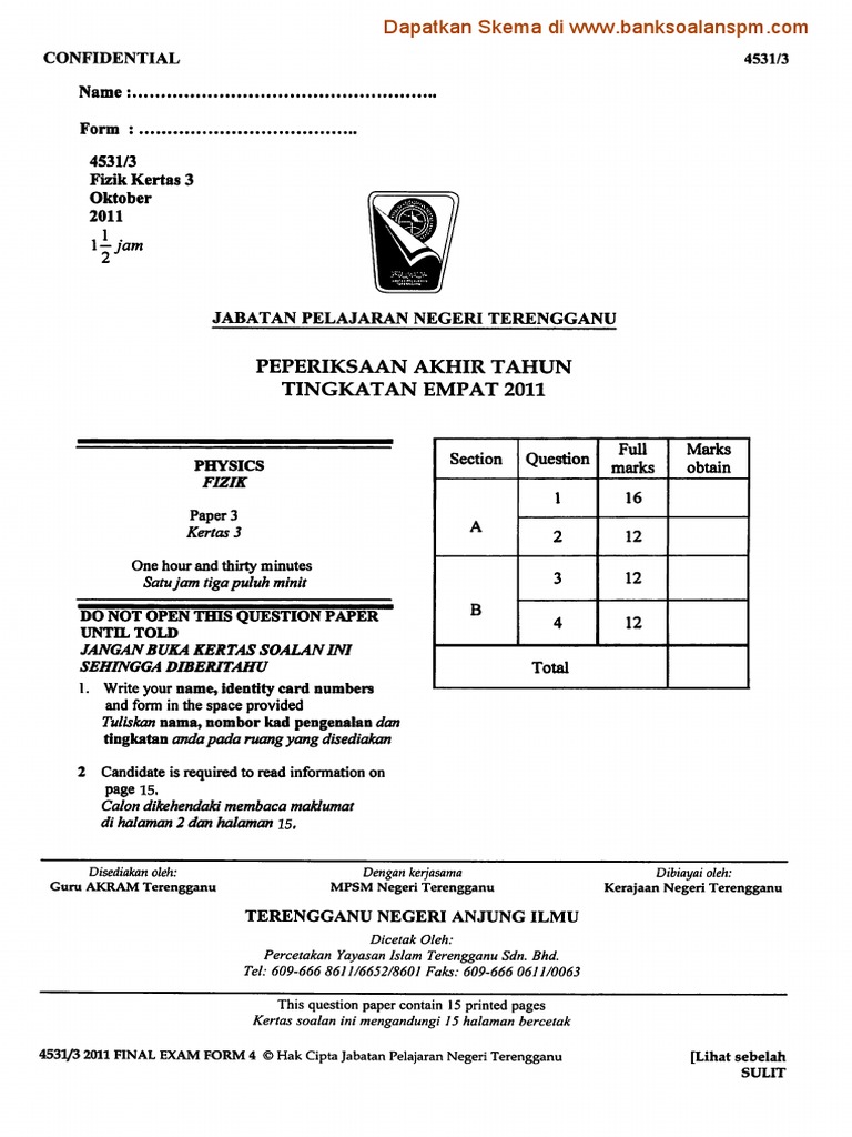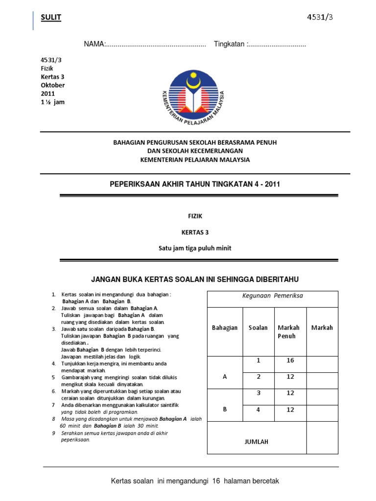 Fizik Kertas 3 Peperiksaan Akhir Tahun Sbp 2011 Ting 4