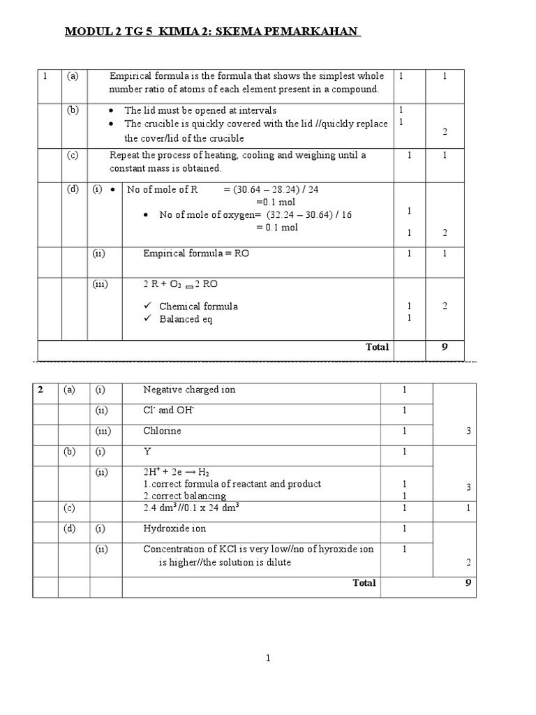 Kertas 3 Skema Final Skema Kertas 3 Peperiksaan Percubaan Spm Kimia Negeri Perlis Question Number 1 A Rubric Score Able To State An Observation Course Hero