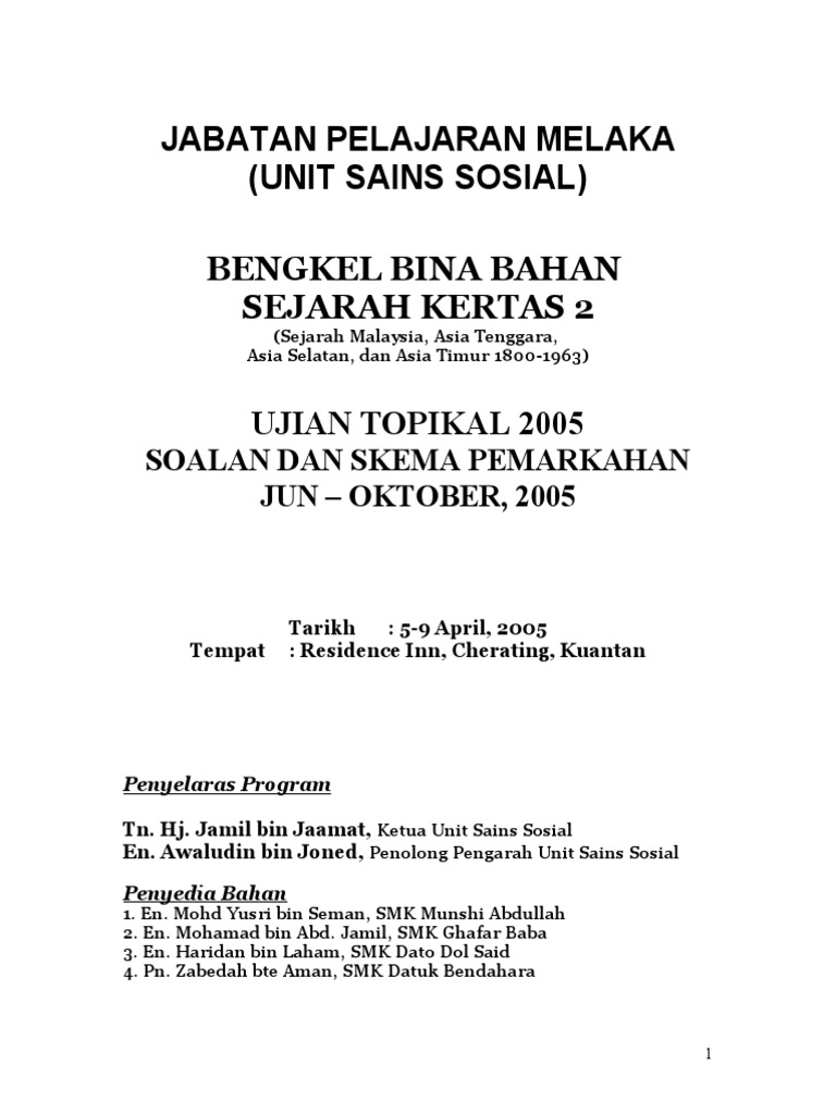 Format Soalan Bahasa Melayu Tingkatan 1 Selangor D