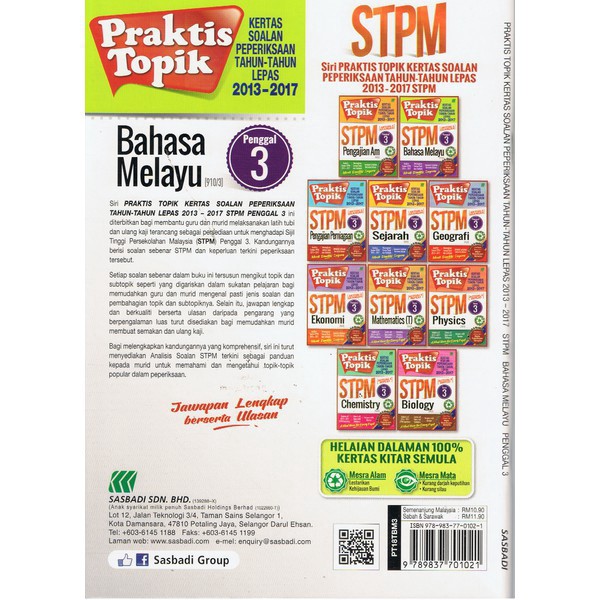 Sasbadi Praktis Topik Peperiksaan 2013 2017 Stpm Bahasa Melayu Penggal 3 Shopee Singapore