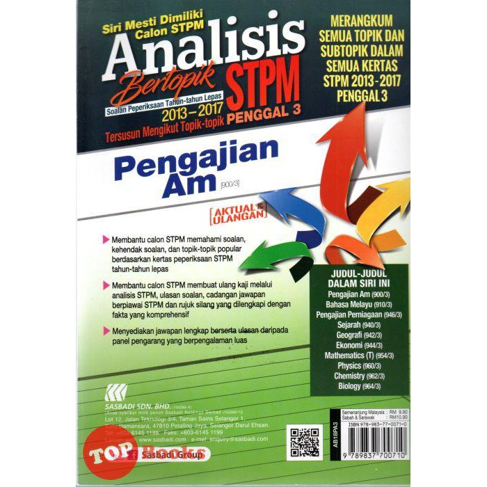 Topbooks Sasbadi Analysis Of Stpm 2013 2017 Recitation Am Penggal 3 Shopee Singapore