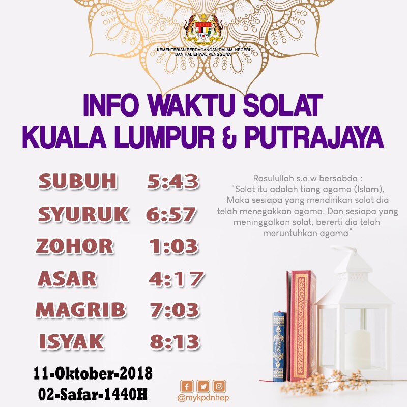 Kpdnhep On Twitter Info Waktu Solat Bagi W P Putrajaya Kuala Lumpur Dan Kawasan Yg Sewaktu Dengannya Kpdnhep Waktusolat